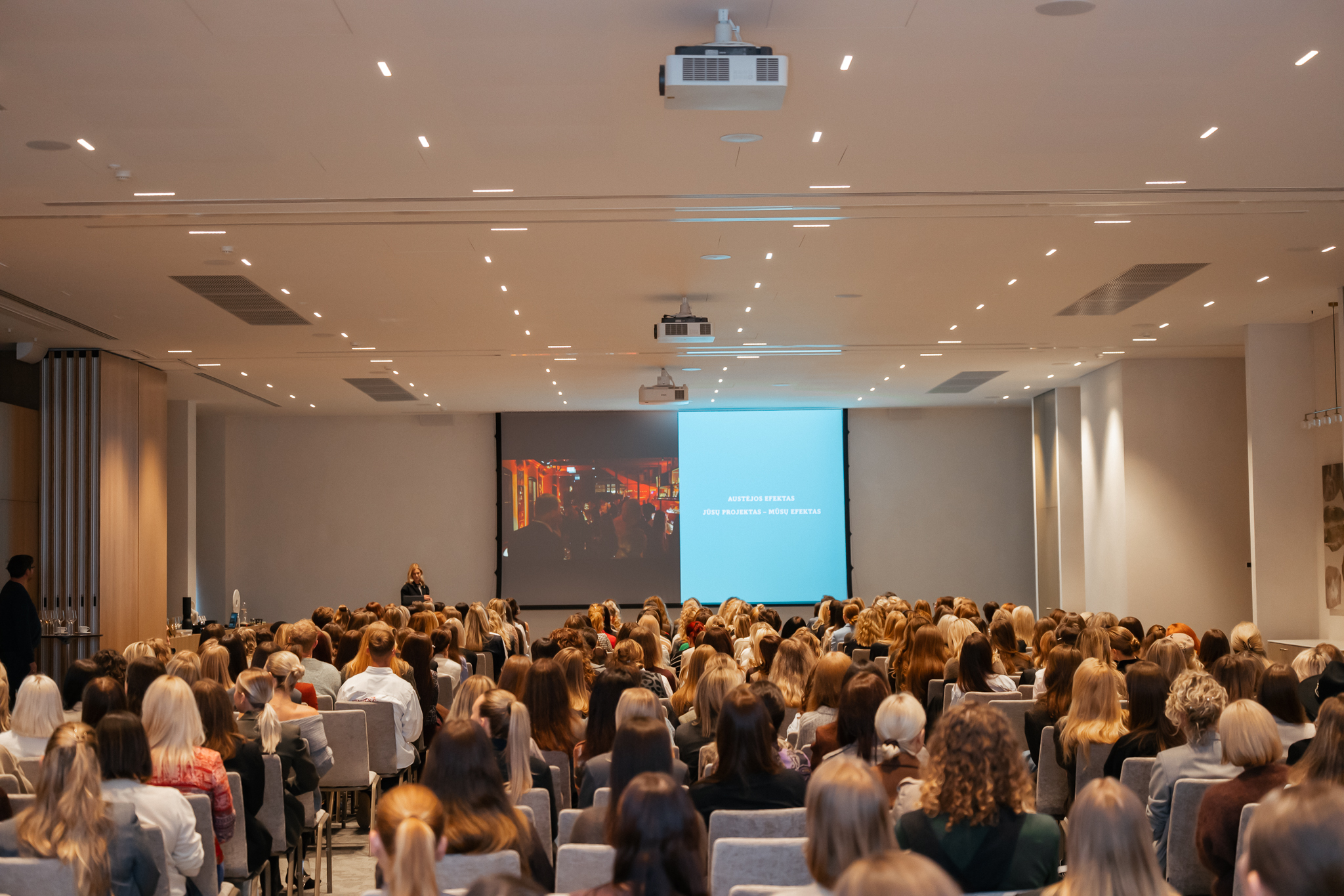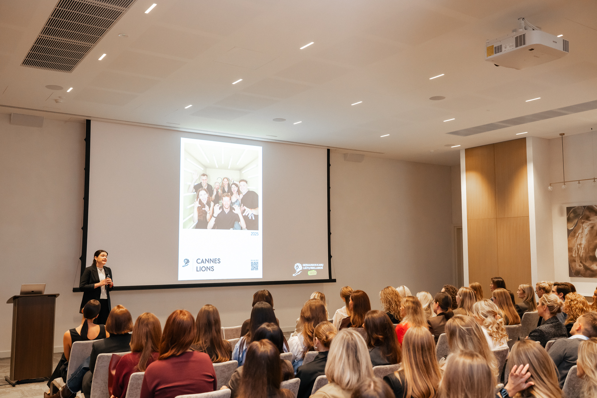 The session combined two key directions. Austeja Jablonskyte, creative campaign strategist, discussed how small impressions can create lasting emotional connections and strengthen relationships. Gabriele Burbiene, Marketing Director at 15min Group, shared insights on the latest trends and influential campaigns from the Cannes Lions Festival that are reshaping the advertising landscape.